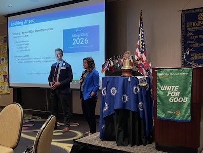 Billings Clinic President Todd Blake and Dr. Erin Rains presented "What's New at Billings Clinic?" Billings Clinic has made great strides in employee engagement and retention to reduce turnover. They are continuing to grow to provide the care our community needs.